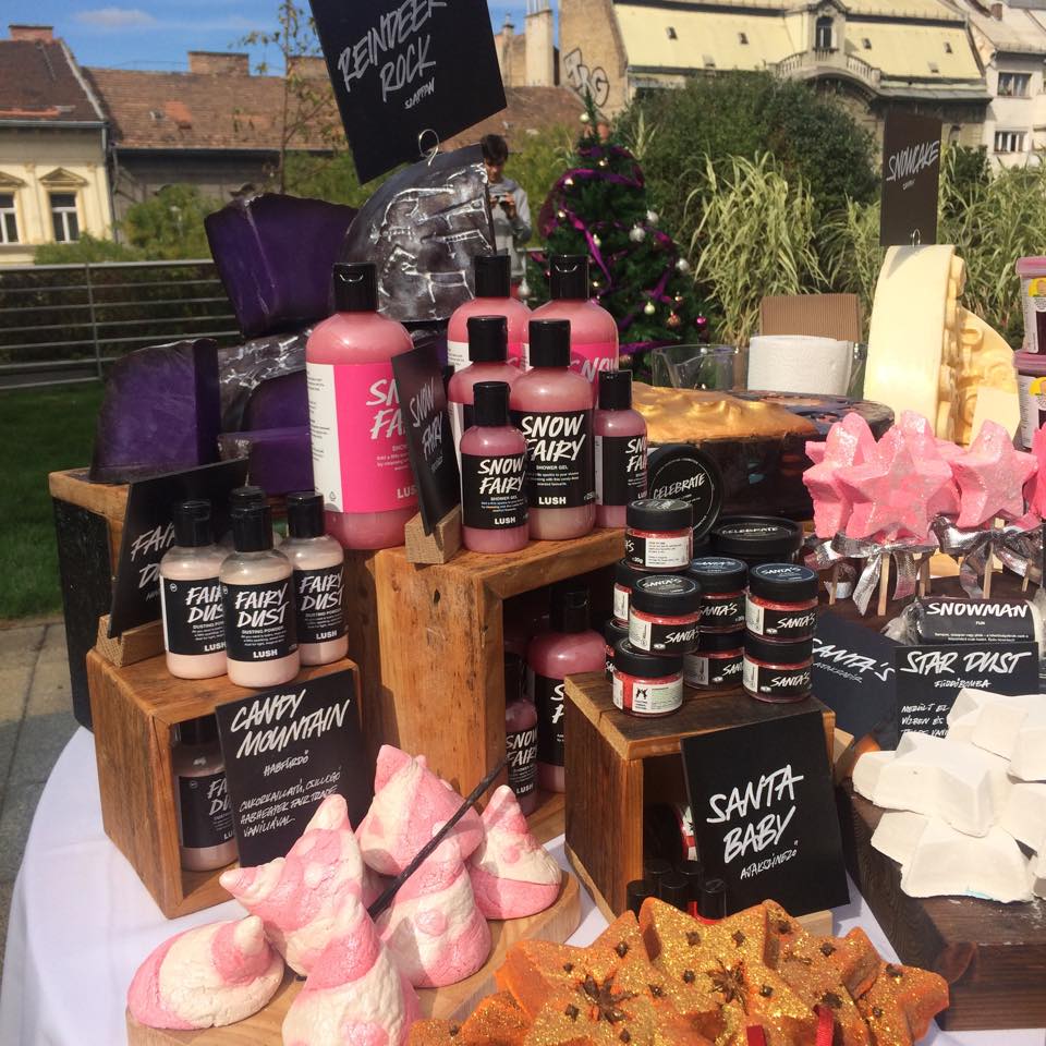 Ahogy ígértem, most beszámolok Nektek a karácsonyi Lush sajtóeseményről. Először is szeretnék gratulálni az egész csapatnak, mert minden tökéletes volt. A hangulat, a termékek, az ételek, a helyszín. A Hilton tetőteraszán zajlott az esemény és szerencsére az idő is kedvezett nekünk. Kicsit hűvös volt, de a forralt bor gyorsan segített ezen a helyzeten. Egy kicsit elfogott a karácsnyi hangulat, de nem is csoda, mert tényleg varázslatos volt a hangulat. Az új termékeket különböző figurákkal mutatták be, ami nagyon eredeti ötlet volt. Így izgalmas módon ismerkedhettünk, meg a téli termékekkel. A hangulat meseszerű volt, annyira boldog és vidám a Lush csapata, hogy öröm csak nézni és hallgatni őket. A mikulás bácsitól személyesen kaptunk útravalót. Mogyorót, mézeskalácsot, almát, narancsot. Az ebéd isteni volt, rengeteg finomság közül válogathattunk.