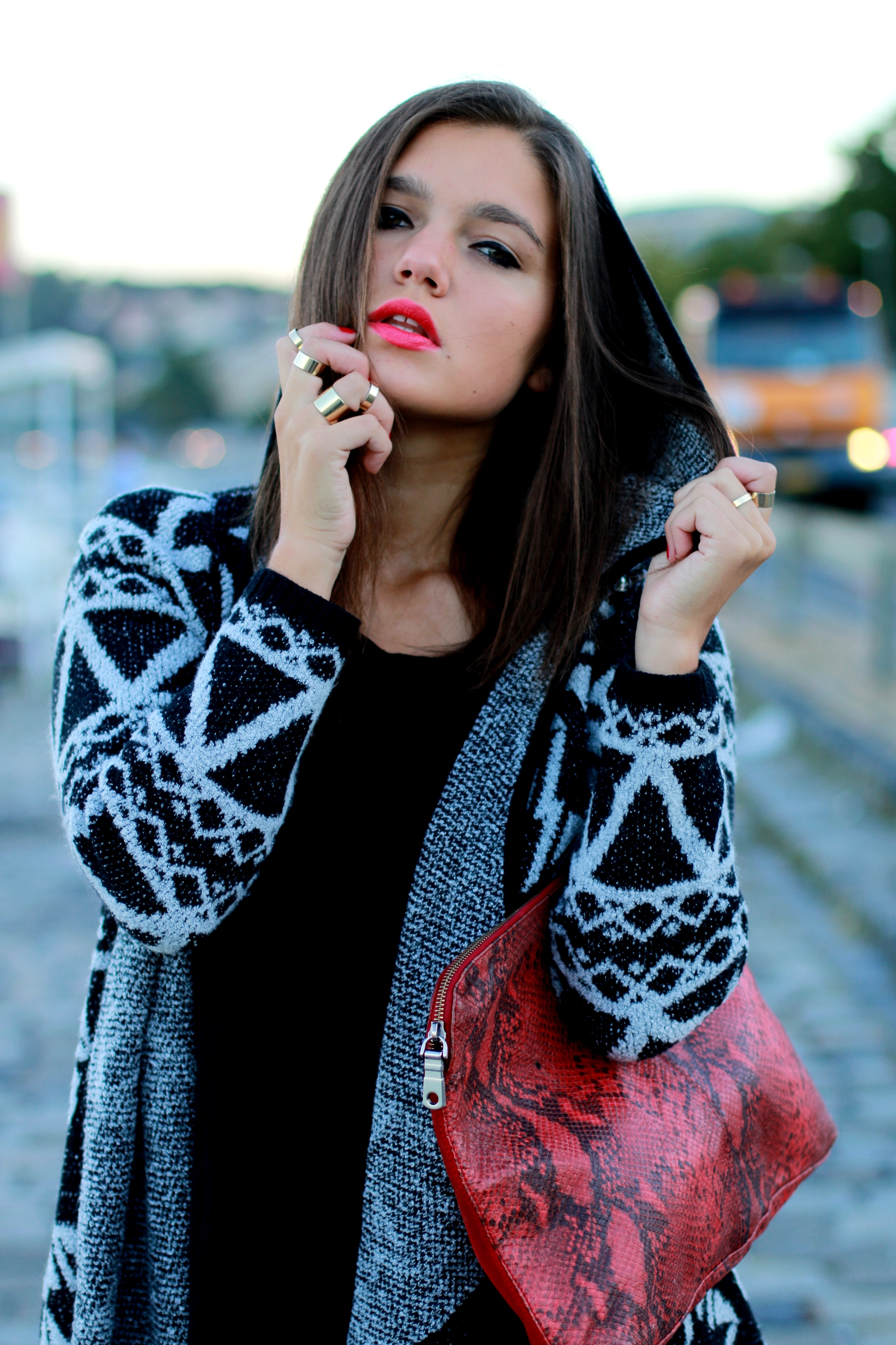 Szeretem amikor végre egy kicsit lehűl az idő és jöhetnek a nagy kötött pulcsik, a hosszú kardigánok, a szép kabátok és csizmák, óriás sálak és így tovább. Szeretem az egyszerű darabokat kombinálni egy-két jól megválasztott kiegészítővel. A piros rúzs pedig minden egyszerű összeállítást feldob!